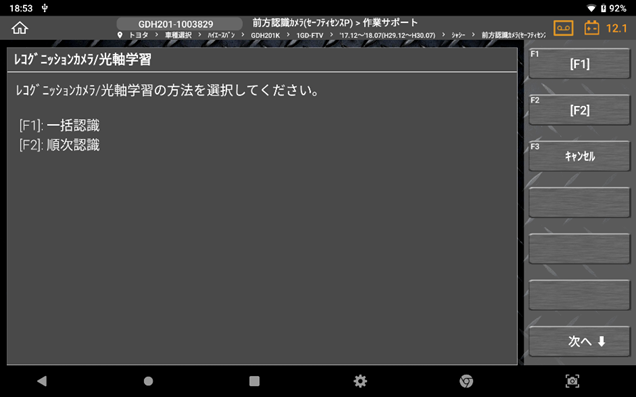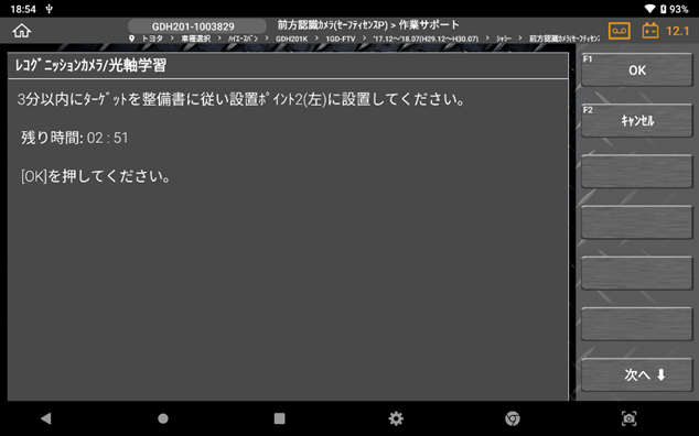 ちなみに、こちらのハイエースの場合は、順次認識という方法でエーミングを行い、